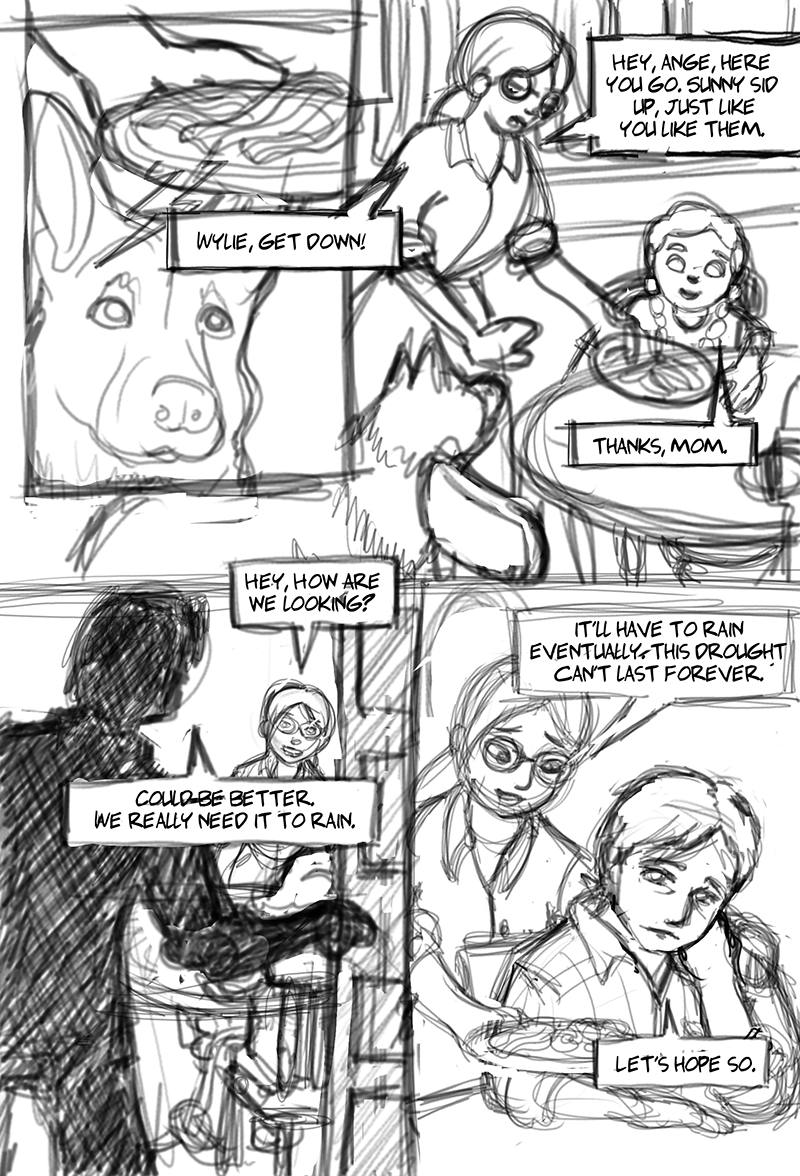 After a period of years of not drawing much of anything, I was tasked with roughing out the first few pages of a graphic novel. I found the process to be a bit arduous at first, but after the first page, it felt like I was getting back into the groove. Unfortunately, priorities shifted and I only got to do these four, but I really enjoyed the chance to draw again.